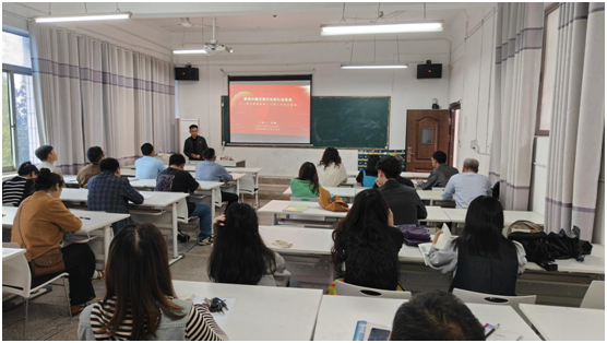 为深入学习贯彻党的二十届三中全会精神,进一步深入学习领会习近平总书记关于全面深化改革的新思想、新观点、新论断,按照学院党委的统一安排部署,2024年10月15日下午,艺术与设计系在实验楼504教室召开党的二十届三中全会精神宣讲会,学院理论宣讲团成员、思政部余鹏博士应邀为我系教师进行主题为《推进中国式现代化的行动指南》的专题宣讲,系主任傅成教授、党总支副书记赖必建、系副主任闵晓杰及系全体教职员工共计40人参加了本次宣讲会。